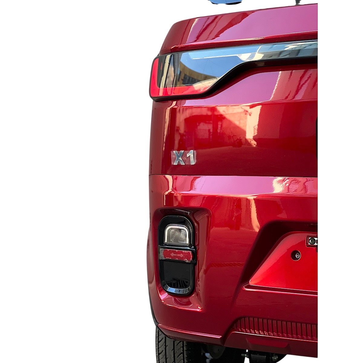 The FLASH X1 electric quadricycle has great stability, especially in turns due to four wheels and reinforced shock absorbers and springs on the axles, the robust construction and the low center of gravity, resulting in it being classified as one of the safest electric quadricycles.