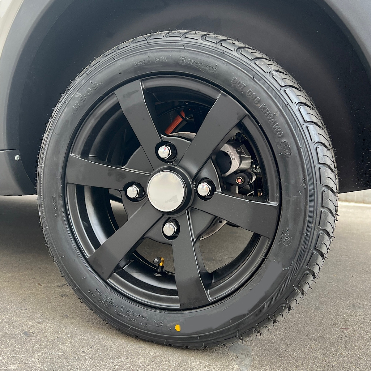 Wheel size – tires front and rear 125/65-12 (50cm diameter, 15cm tread width)