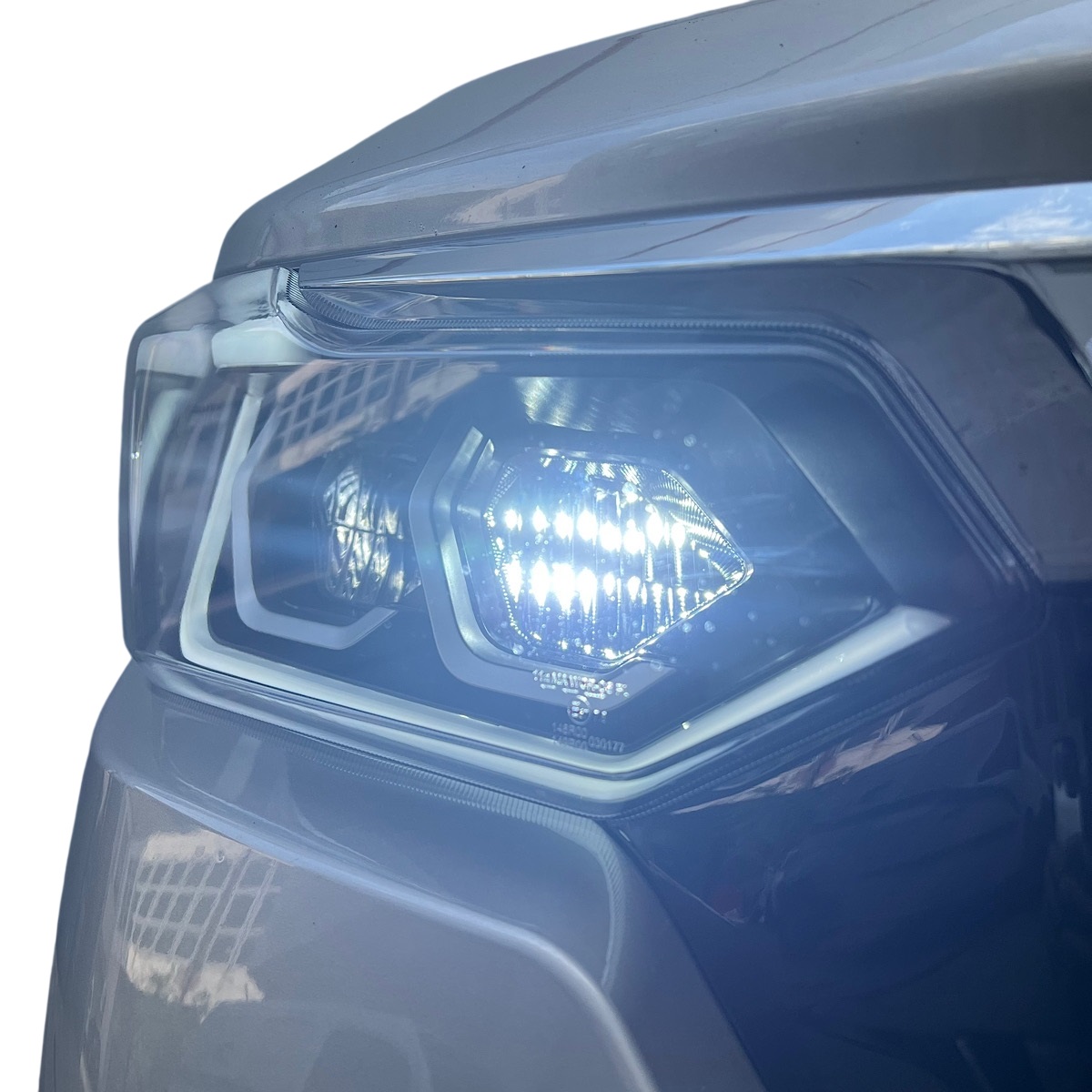Digital display with lighting and indications: battery level, speed, total distance traveled, high beam indicator, left – right turn signal indicator.