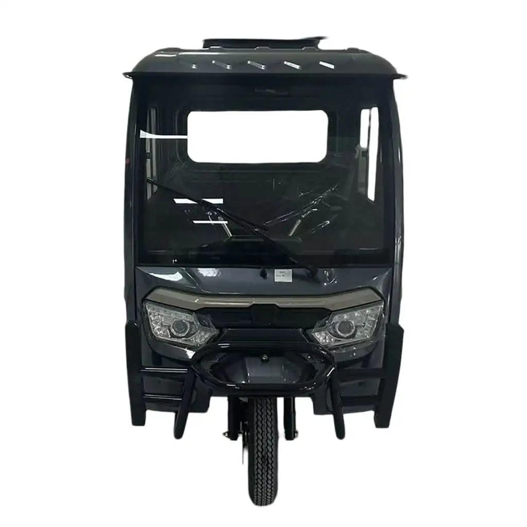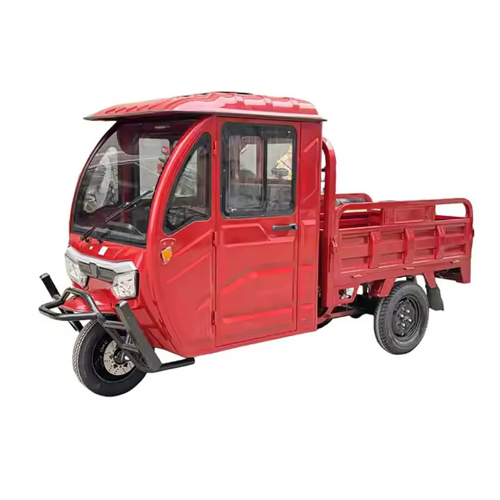 With a fully enclosed cabin – canopy with two doors left – right, wide driver – passenger seat and electric windshield wiper.