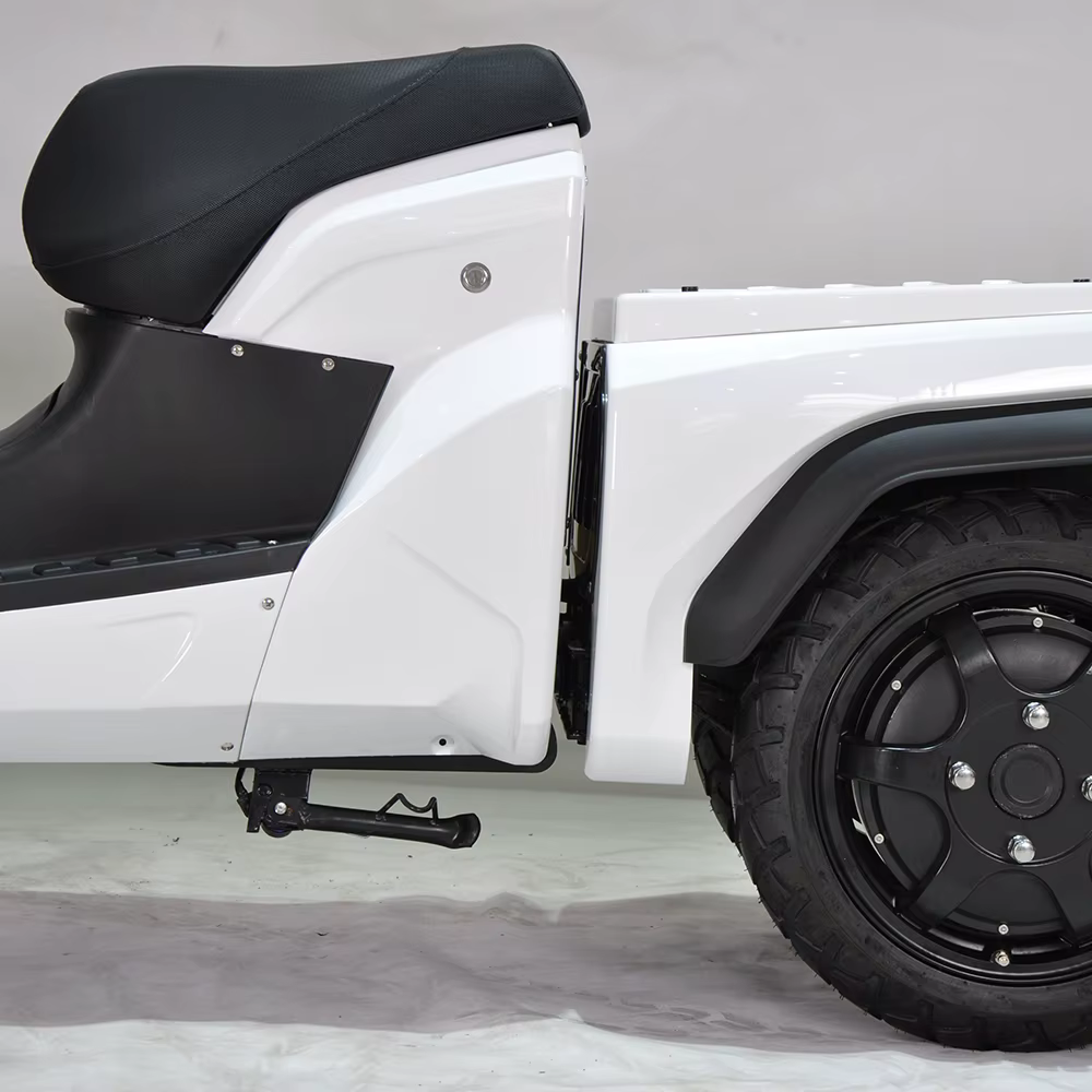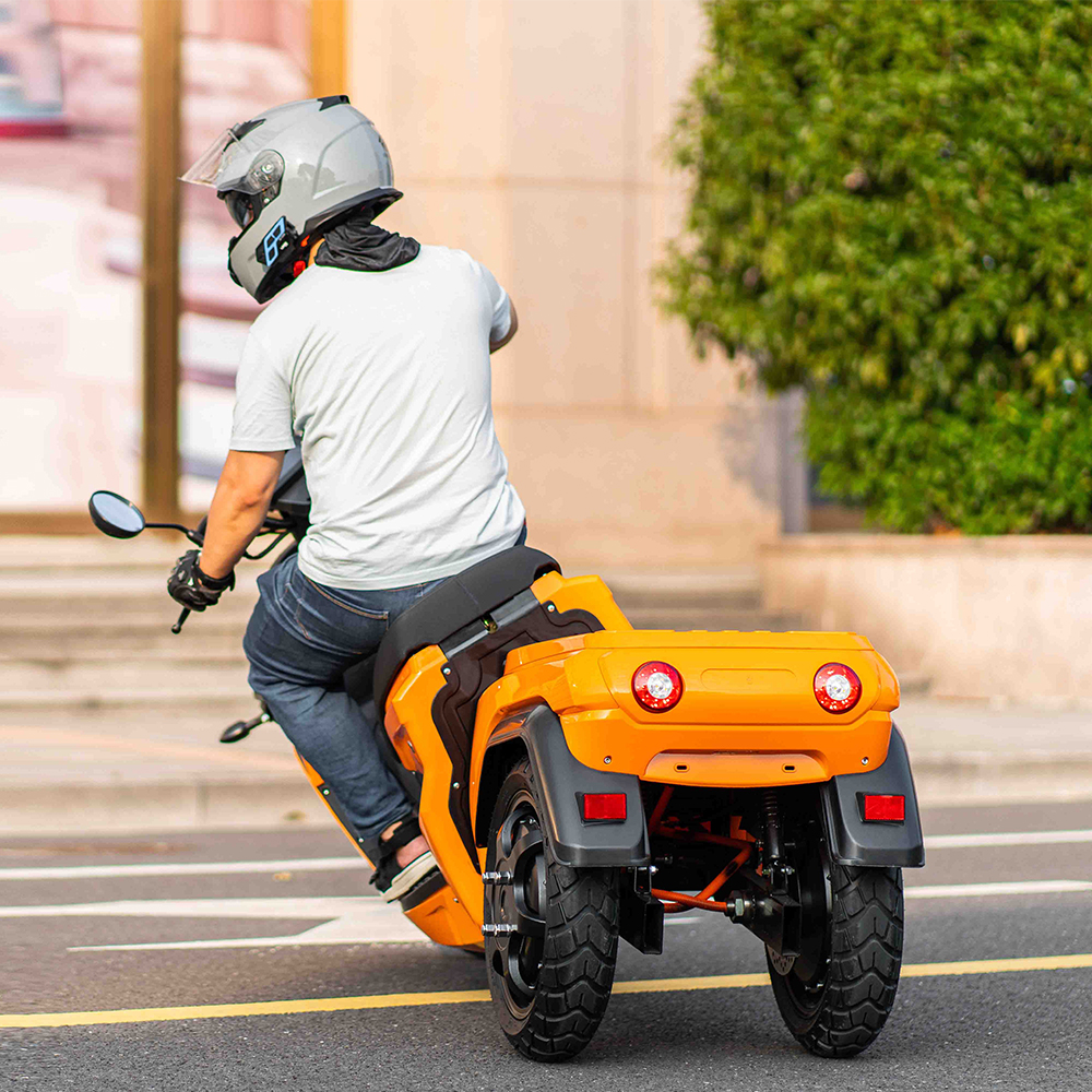 The CARRIER electric three-wheeled scooter motorbike features the patented TILTING system, which allows the tricycle to tilt during turns and thus gives the rider the feeling of driving a two-wheeled vehicle while maintaining the stability of the tricycle.